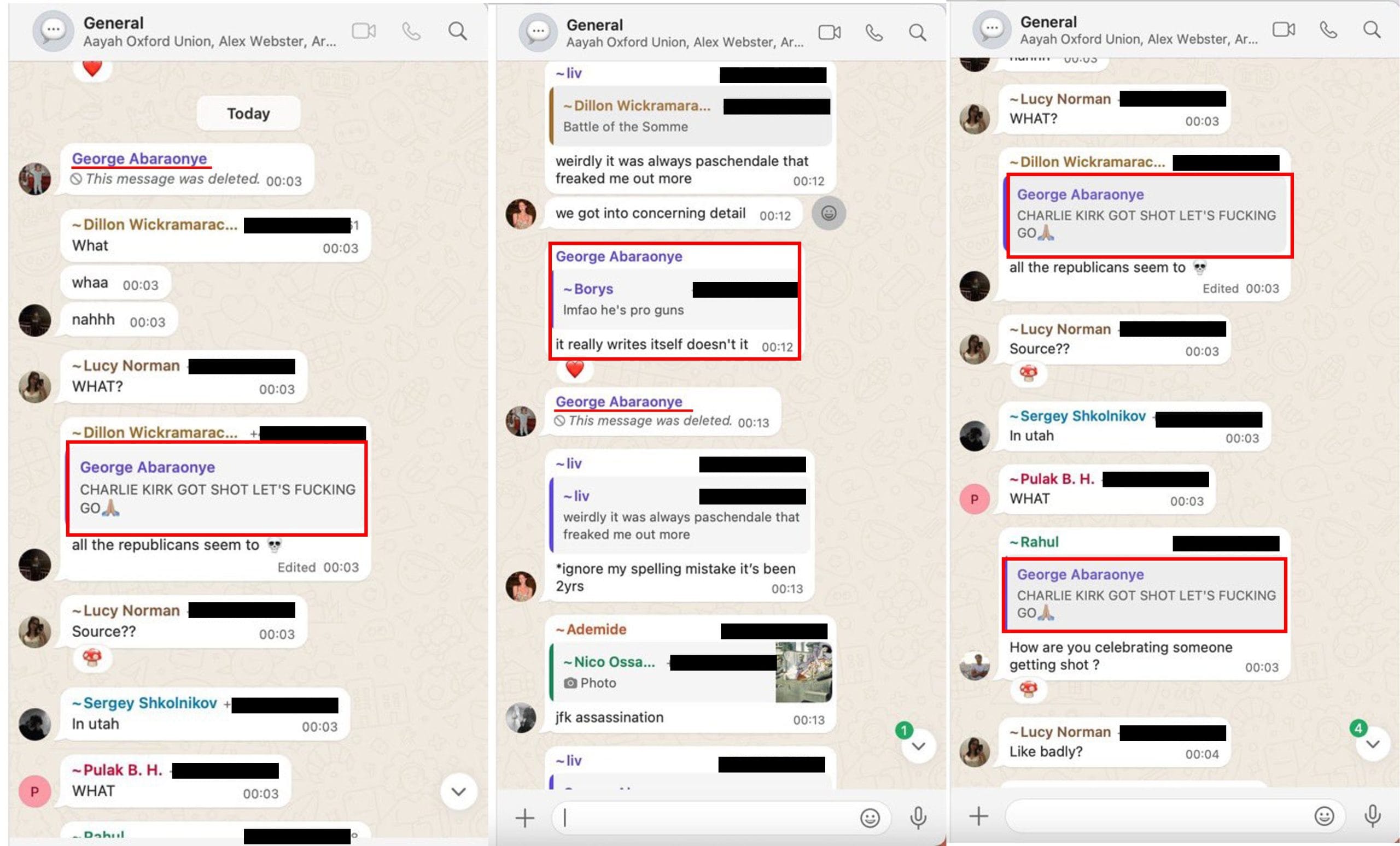 In the case of George Abaraonye, the former Oxford Union President-elect, his remarks celebrating the death of US conservative commentator Charlie Kirk—“Charlie Kirk got shot, let’s f****** go” and “Charlie Kirk got shot loool”—were seen by many as crossing a critical line.