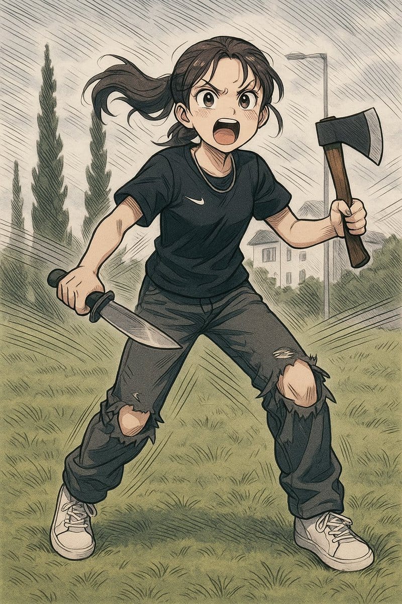 Wielding a knife and a small hatchet, Sophie shouted, “Don’t touch my little sister, she’s twelve!” in a moment that has since been viewed as either a troubling act of youthful recklessness or a desperate stand against a failing system.