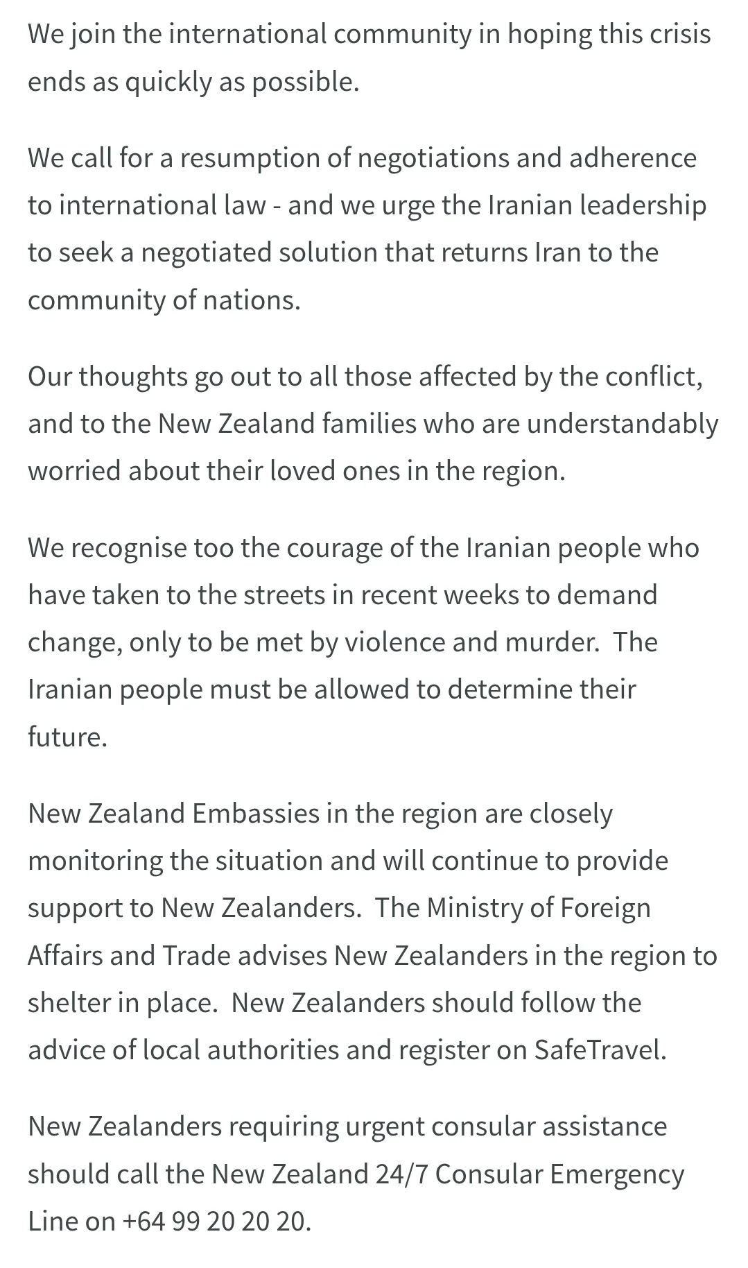 The NZ government statement follows: